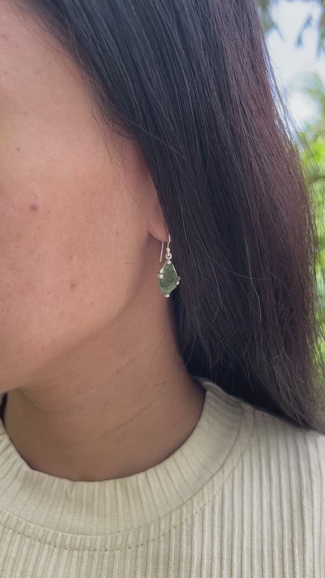 - Handcrafted Sterling Silver Earrings with genuine collector grade 4-8 cts rough Moldavite.
